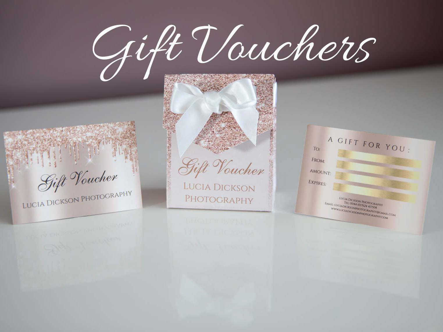 - 60 minute photo-shoot. This can be either at my Douglas Studio or at any outdoor or indoor location on the Isle of Man. Weather permitting.